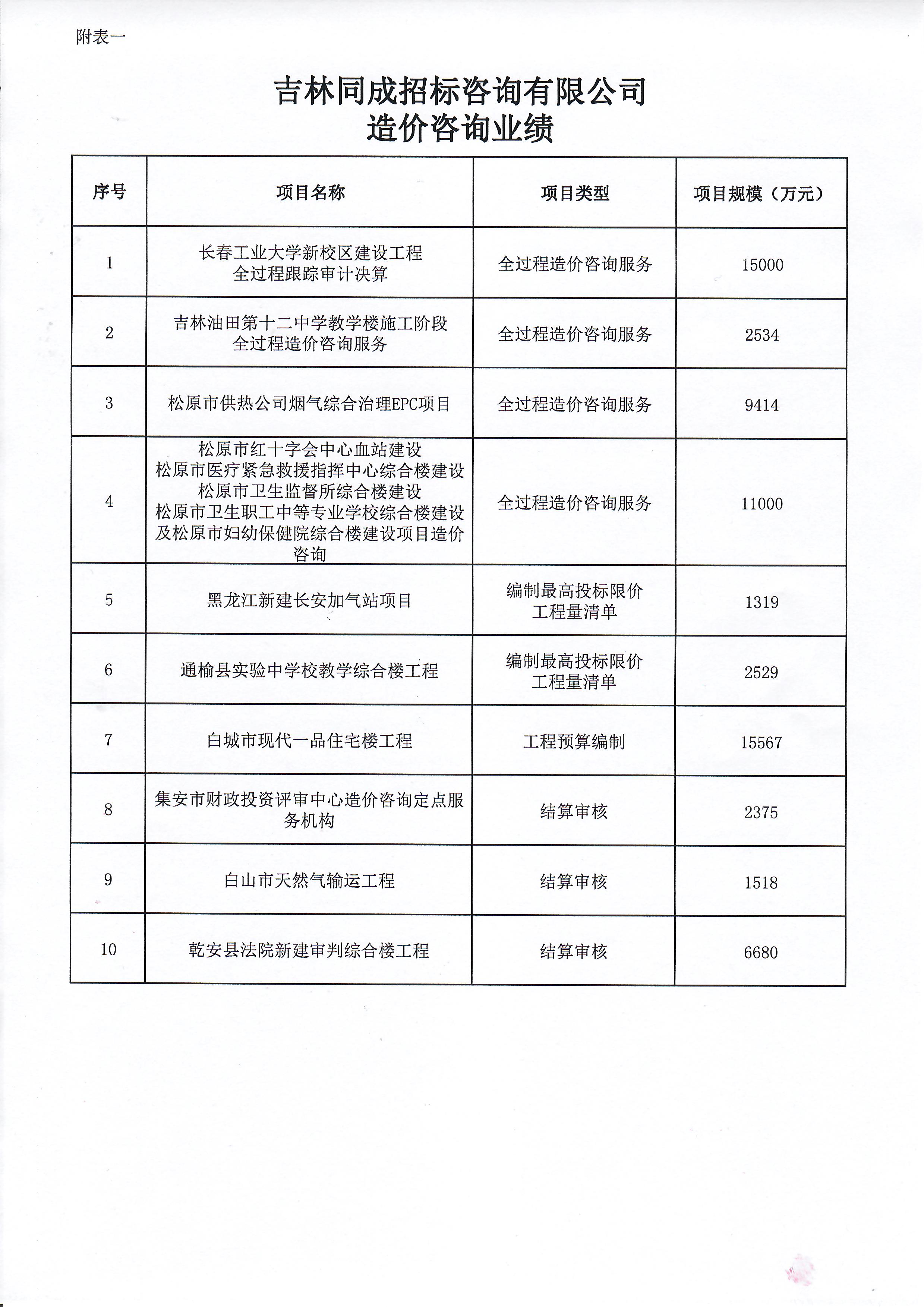 工程建設(shè)項(xiàng)目咨詢業(yè)績 |